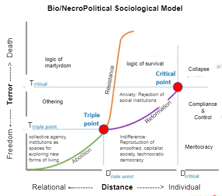 Then, the chemistry concept of phase changes jumped in my head and I spent four days searching liminality and thresholds and triple and critical point and trying to fit this to education and relationality and necropolitics and futurity.  Along the way, I found this great example of speculative fiction about democratization (or not) of educational technology, and everyone should read it  (Macgilchrist, 2019).  The below is an attempted synthesis of that search.